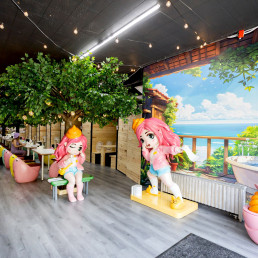 The cafe also offers a variety of refreshing drinks, including the Matcha Pistachio Bingsu, Coconut Sakura Foam, and Passion Pineapple Fruit Tea. Each drink is carefully crafted to provide a unique and satisfying experience.